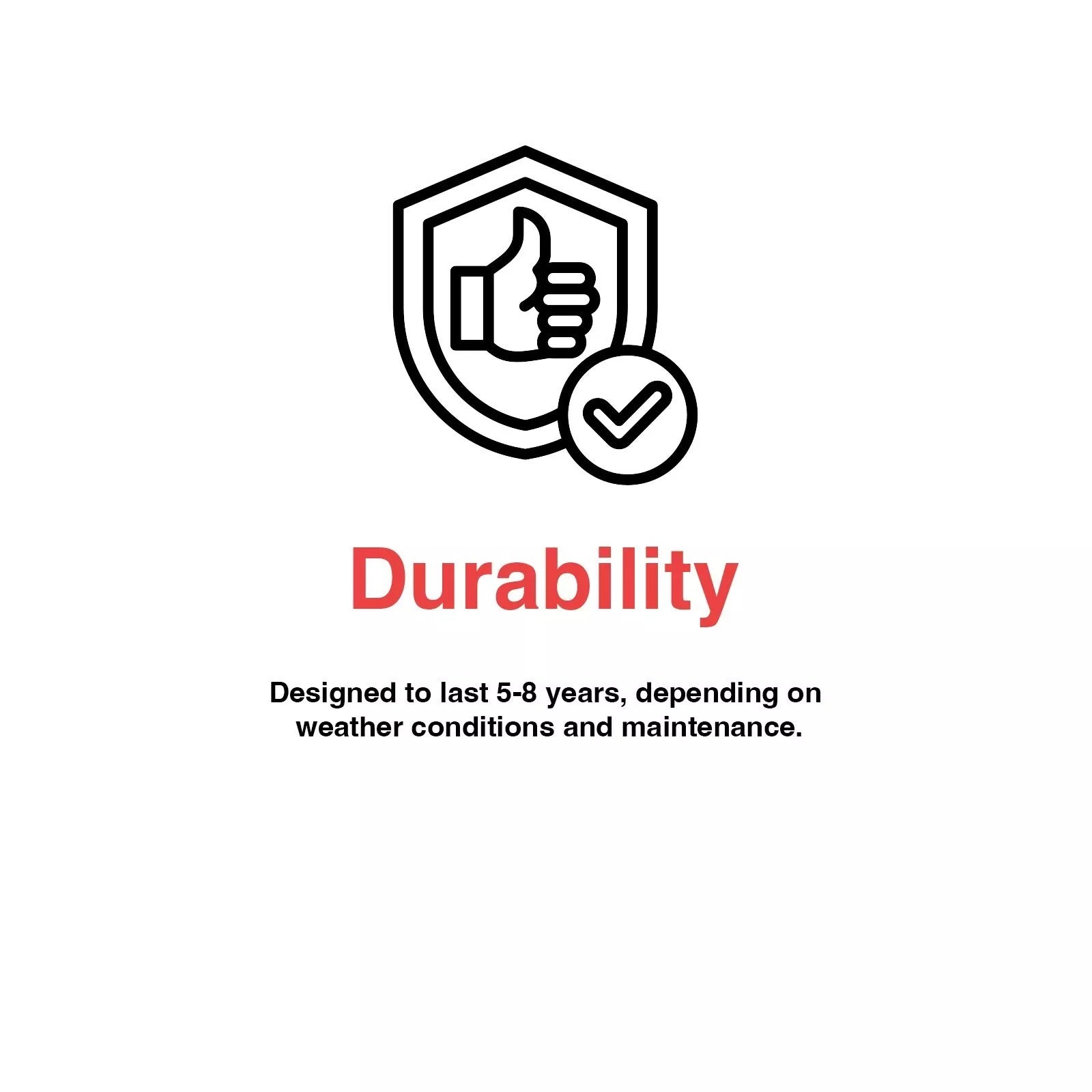 Durability: 5+ years outdoors; withstands -40°F to 200°F.